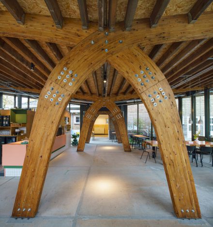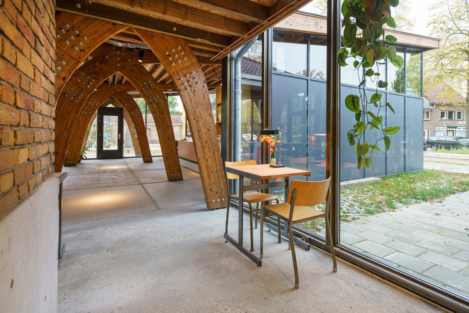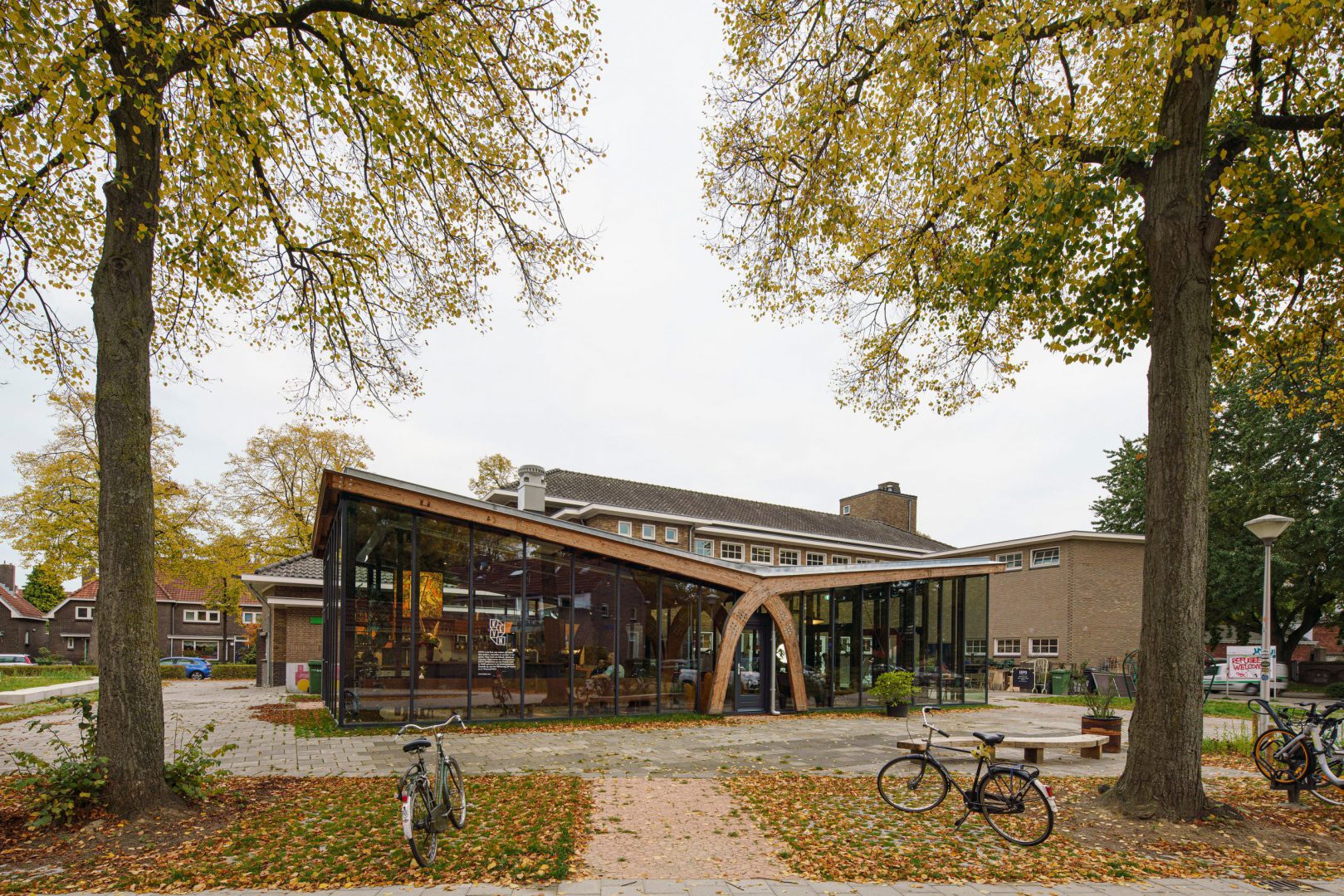 De school met zijn kenmerkende corridors is als monument hersteld. Door de drie hoge ramen aan de achterzijde van het gebouw te vervangen voor deuren is de school met het achterliggende plein verbonden. De plaatsing van een extravert paviljoen voor de introverte school heeft ervoor gezorgd dat een deel van het plein extra is omkaderd en daardoor is er nieuw leven ontstaan.